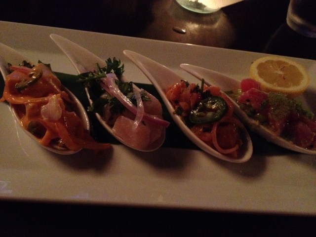 To not overdo the taco theme of the evening (although they were all quite tasty – especially the beef tongue), I next ordered the Ceviche de Pescado (Tilapia, habanero, red onion, fresh lime).