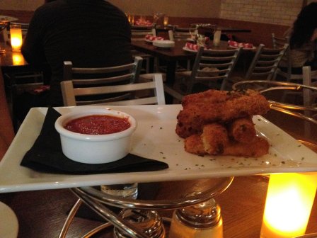 Immediately our olfactory senses were bombarded with the mouth-watering smells of Pi’s main dish – pizza.  We jumped right in with an order of the Pi Bites (prosciutto and cheese sticks).  Cheese sticks are a guilty pleasure of mine, and these ones were tasty with the addition of the prosciutto (plus it was a small starter so I felt less bad about ordering them).