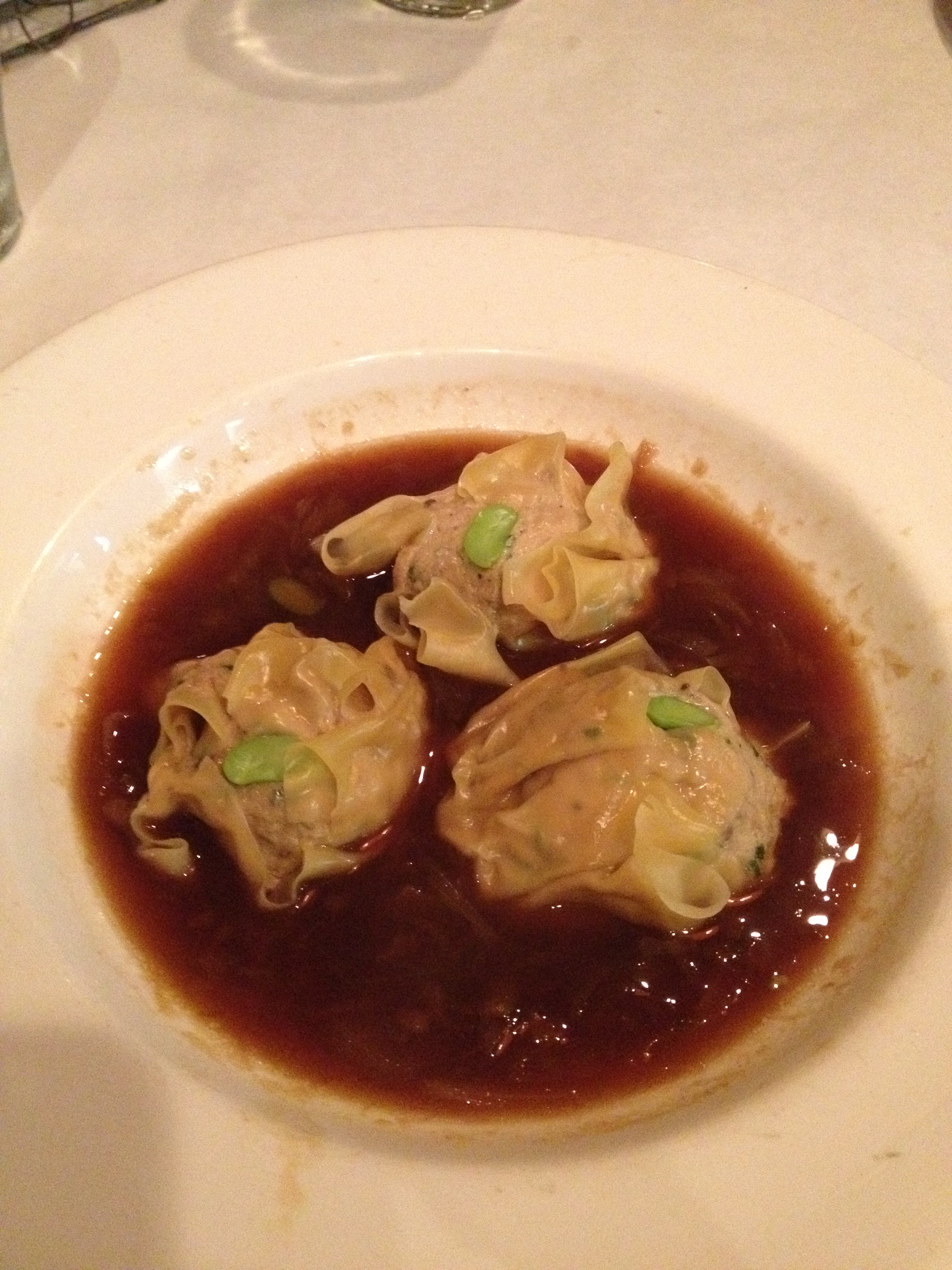 The first course was the Maine Lobster, Cucumber, and Radish salad, served with a Greek Yogurt Sorbet, Turmeric Vinaigrette, and a Cumin Tuile…cool and refreshing, with chunks of lobster meat for an interesting twist. Paired with a 2011 Albariño Rias Baixas Esencia Diviña from Adegas Gran Vinum.