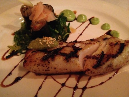 Next up – Swarnadwipa Poached Alaskan Halibut, served with Young Coconut, Lemongrass Mousse, and Roasted Corn Consommé. The fish was light with a smokey flavor, which contrasted well with the lemongrass. The 2011 La Meriana Gavi di Gavi from Broglia, with its front-loaded peach notes, complimented the dish well.